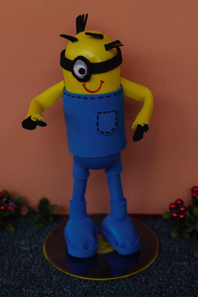 MinionPoupée fofucha réalisée à la main en thermoformant des plaques de gomme EVA.Disponible sur commandeDate : 2015Technique : Poupée FofuchaTaille : Entre 10 et 20 cm