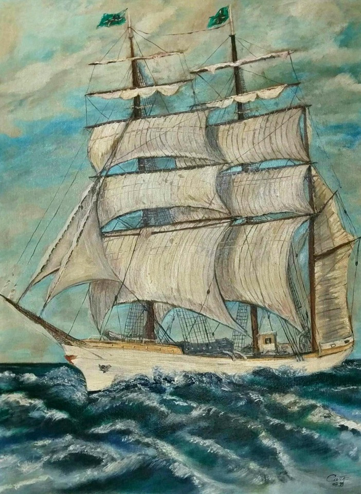 Le trois matsUne représentation typique d'un trois mats d'époque.Date : Juillet 1999Technique : Huile sur ContreplaquéSupport : ContreplaquéTaille : 80 x 60 cmEncadrement : Encadrement mouluré bois
