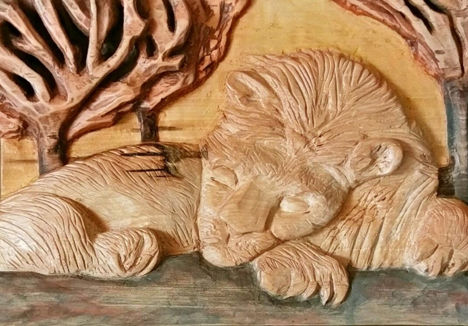 Le lionDate : Avril 2016Technique : Bas-reliefSupport : Bois tilleulTaille : 42 x 29 x 4,5 cm