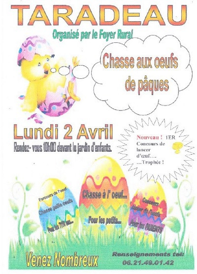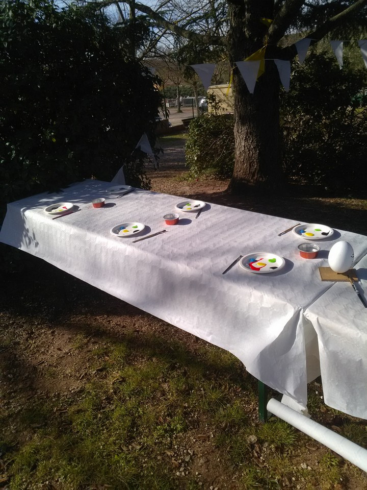 Chasse à l'oeuf pour les petits, concours de lancer d'oeufs, atelier peinture.