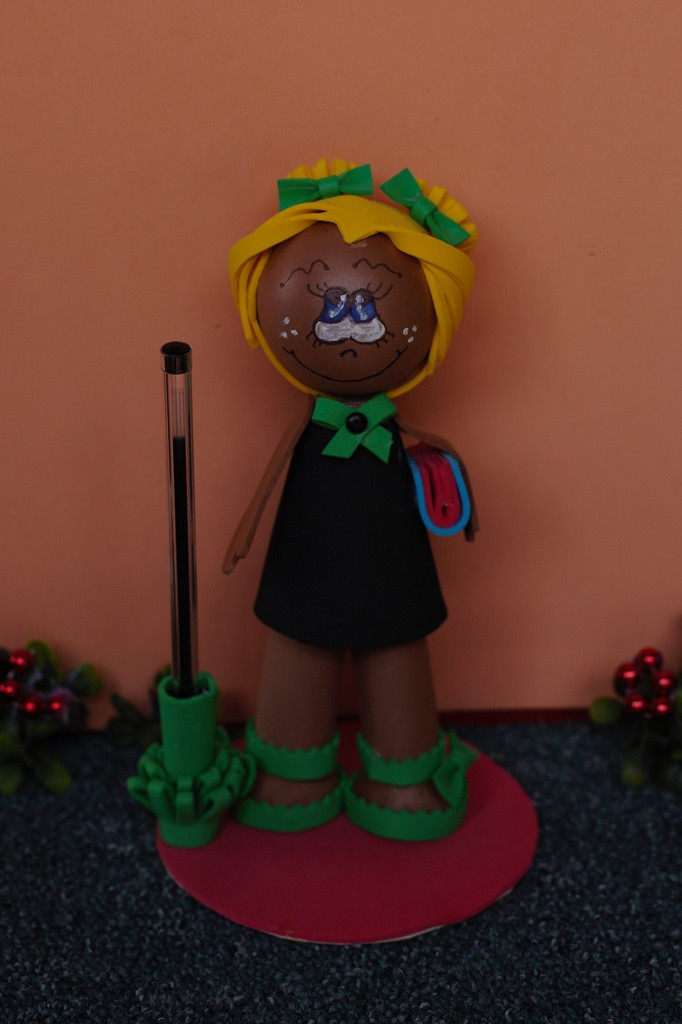 Crayon mamiePoupée fofucha réalisée à la main en thermoformant des plaques de gomme EVA.Disponible sur commandeDate : 2015Technique : Poupée FofuchaTaille : Entre 10 et 20 cm