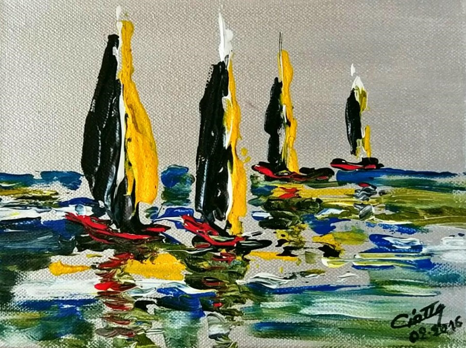 Voile jauneDate : Février 2016Technique : AcryliqueSupport : ToileTaille : 24 x 18 cmEncadrement : Non encadrée