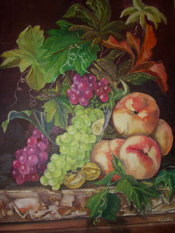 Nature morte composée de fruits de saisons aux couleurs vives.