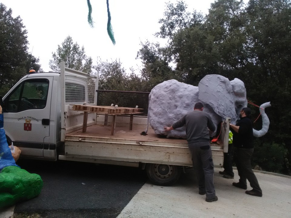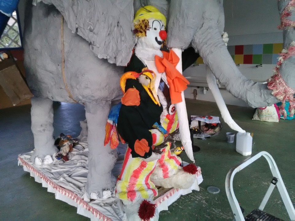 Sur le Thème du Cirque, le caramentran de cette année 2017 représente une troupe de cirque avec son éléphant et son clown en direction du jugement.